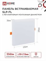 Характеристики Панель светодиодная встраиваемая безрамочная SLP-FL 36Вт 230В 4000К 3240Лм 226мм с регулируемым монтажом 45-190мм белая IP20 IN HOME: