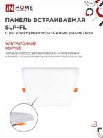 Характеристики Панель светодиодная встраиваемая безрамочная SLP-FL 36Вт 230В 6500К 3240Лм 226мм с регулируемым монтажом 45-190мм белая IP20 IN HOME: