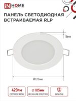 Назначение и применение Панель светодиодная встраиваемая круглая RLP 6Вт 230В 4000К 420Лм 120мм белая IP40 IN HOME