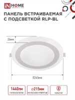 Характеристики Панель светодиодная встраиваемая круглая RLP-BL 24Вт 230В 4000К 1440Лм 245мм с подсветкой белая IP20 IN HOME: