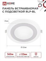 Характеристики Панель светодиодная встраиваемая круглая RLP-BL 9Вт 230В 4000К 540Лм 145мм с подсветкой белая IP20 IN HOME: