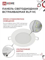 Назначение и применение Панель светодиодная встраиваемая круглая RLP-VC 6Вт 230В 6500 420Лм 95мм белая IP40 IN HOME