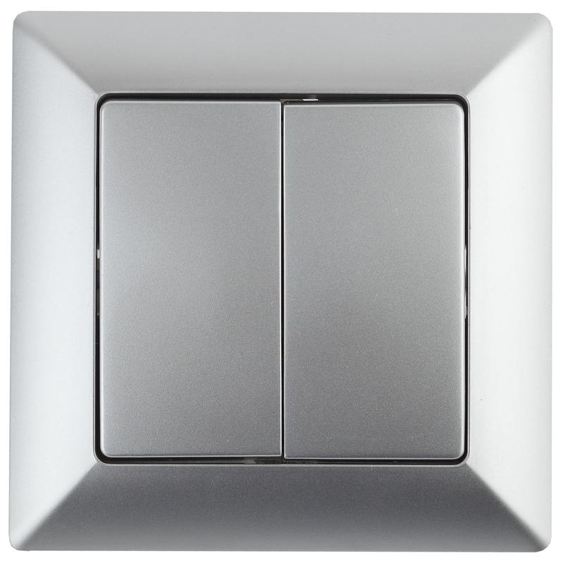 Характеристики Переключатель Intro Solo 4-107-03 двухклавишный 10А-250В, IP20, СУ, алюминий: