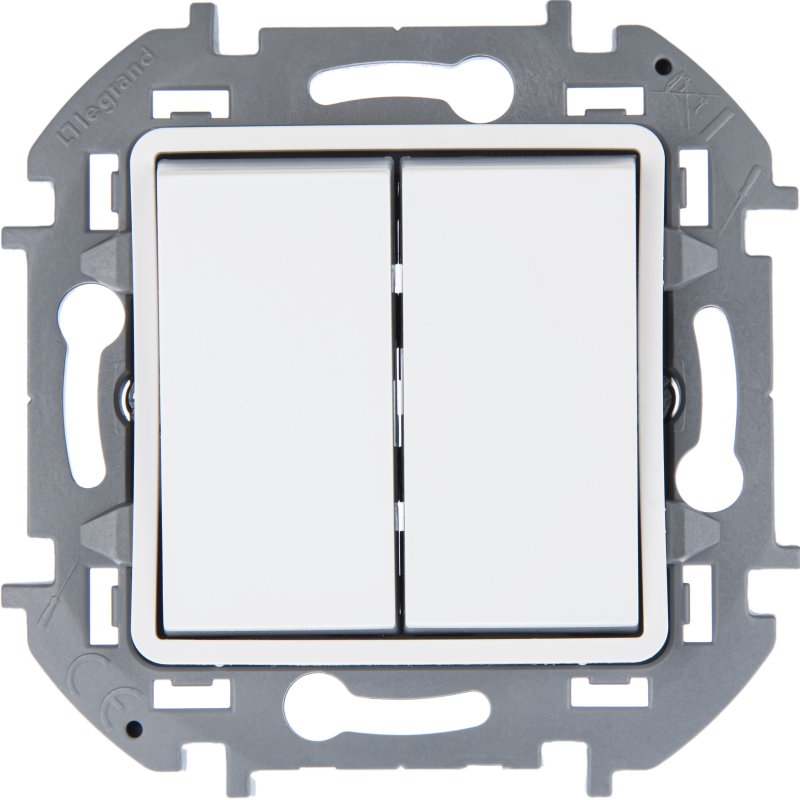 Переключатель модульный двухклавишный с подсветкой Legrand Inspiria для скрытого монтажа, цвет «Белый», номинальный ток 10 А, напряжение ~250В. Предназначен для установки в электрических сетях жилых и общественных зданий и используется для управления приборами освещения, вентиляции и т.д. Используется для независимой коммутации двух нагрузок. Подходит для управления с одного, двух или более мест. Оснащены двумя лампами для подсветки или индикации. Особенности изделия: — Изделие построено на базе надежных и проверенных временем одномодульных переключателей серии Mosaic и переходного адаптера Mosaic-Inspiria. — Механизмы удобно монтировать благодаря безвинтовым клеммам с удобными толкателями, цветовой и буквенной маркировками, а также функциональной рабочей схеме на корпусе — Удобно подключить несколько кабелей к одной клемме поможет фронтальное размещение лампы подсветки — При необходимости дополнительно подключить нейтральный проводник, это легко сделать благодаря выделенной клемме — Оригинальное решение контурной подсветки без линз