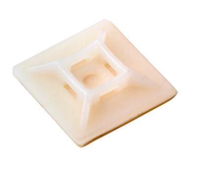 Электромонтажные работы по проведению проводки не обходятся без площадки под винт. Она позволяет с помощью всего одного самореза или винта прикрепить пучки проводов, стянутые хомутом, к абсолютно любой поверхности. Тем самым произвести как временную, так и постоянную организацию кабельной проводки. Плюс к этому площадку под винт используют также и для закрепления иных нетяжёлых предметов. Выполнена площадка из пластика белого цвета и оснащена специальным отверстием под хомут. Размер площадки 28х28 мм.