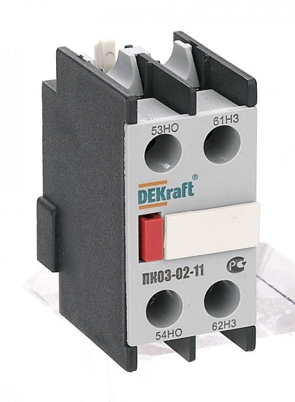 Характеристики Приставка контактная ПК-03 лицев. доп. контакты 1НО+1НЗ DEKraft 24100DEK: