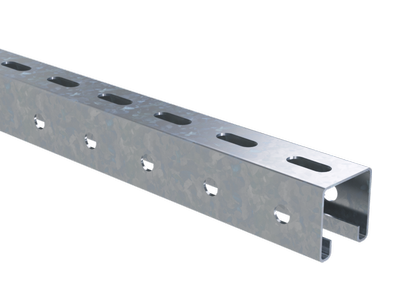 Монтажные элементы серии «B5 Combitech» совместимы с металлическими лотками и аксессуарами ДКС любой серии, а также с шинопроводами (как осветительными, так и магистральными). Элементы системы легко комбинируются друг с другом, что позволяет создавать конструкции любой сложности и строить даже проекты нестандартных размеров. При этом применяются соединения болтового типа — для крепления элементов не требуется использование сварки. Изделия могут выпускаться в различных исполнениях. Стандартное исполнение — «Сталь, оцинкованная по методу Сендзимира». Профили различной формы применяются для организации прочных опорных конструкций. С-образный профиль изготовлен из стали толщиной 1,5 мм. Он имеет длину 3000 мм. Элемент этого типа может применяться для крепления в подвес или к стене, монтажа консолей, подвеса на шпильках, а также в качестве кабеленесущих систем для осветительных трасс.