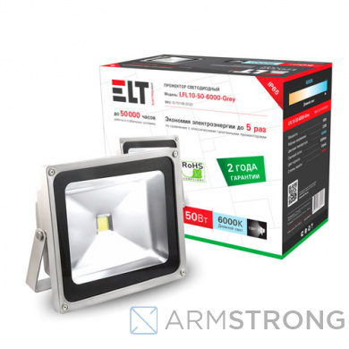 Характеристики Прожектор светодиодный LFL10-50-6000-Grey, 50Вт, 220В, 6000К ELT: