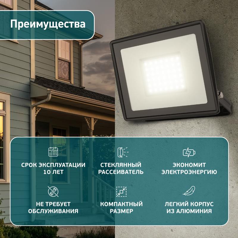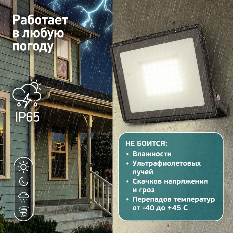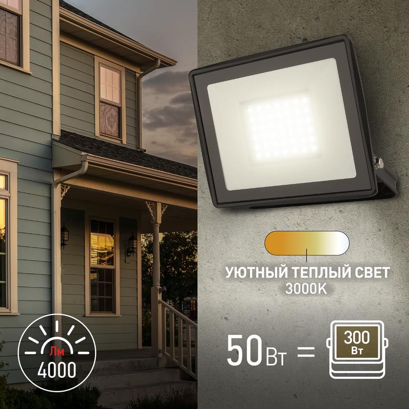 Характеристики Прожектор светодиодный уличный ЭРА LPR-023-0-30K-050 50Вт 3000K 4000Лм IP65: