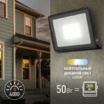 Характеристики Прожектор светодиодный уличный ЭРА LPR-023-0-40K-050 50Вт 4000K 4000Лм IP65: