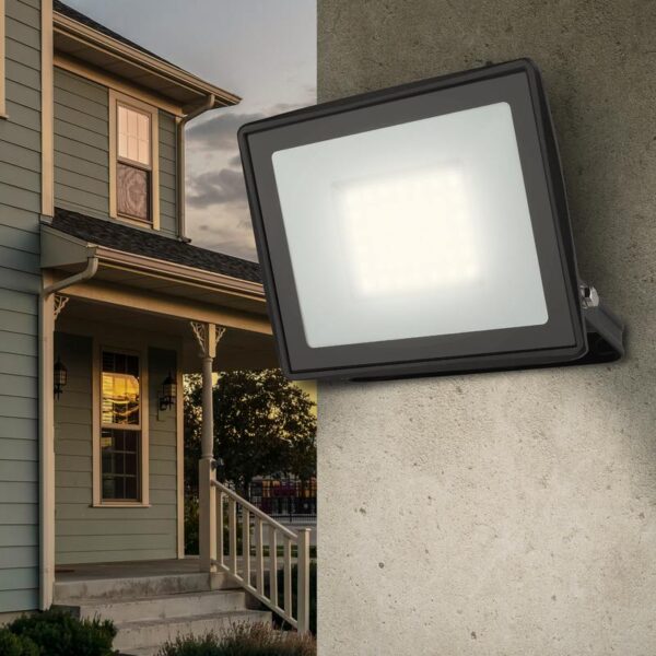 Прожектор светодиодный уличный с высоким световым потоком. Корпус -черный, изготовлен из прочного алюминия, стекло закаленное. Экономичная LED-технология сократит до 90% затрат на электроэнергию. Прожектор устойчив к механическим воздействиям, защищен от дождя и пыли, работает при широком диапазоне температур (от -40 до +45). Отличается простой и быстрой установкой: есть кронштейн специальной формы и регулировочные болты для выбора направления света. Подходит как для внутреннего, так и для наружного применения.