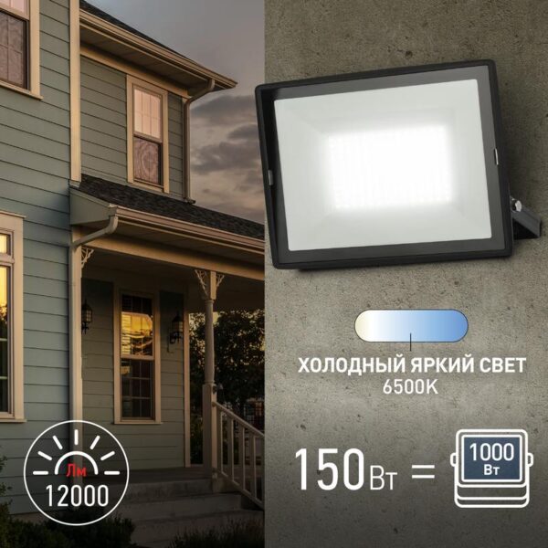 Характеристики Прожектор светодиодный уличный ЭРА LPR-023-0-65K-150 150Вт 6500K 12000Лм IP65:
