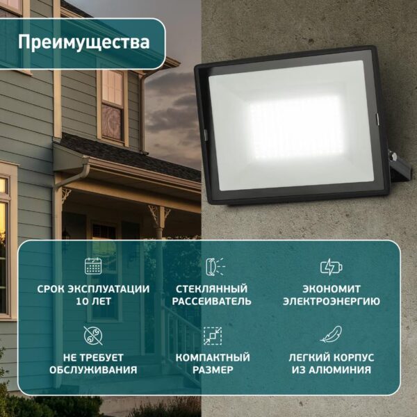 Прожектор светодиодный уличный с высоким световым потоком. Корпус -черный, изготовлен из прочного алюминия, стекло закаленное. Экономичная LED-технология сократит до 90% затрат на электроэнергию. Прожектор устойчив к механическим воздействиям, защищен от дождя и пыли, работает при широком диапазоне температур (от -40 до +45). Отличается простой и быстрой установкой: есть кронштейн специальной формы и регулировочные болты для выбора направления света. Подходит как для внутреннего, так и для наружного применения.