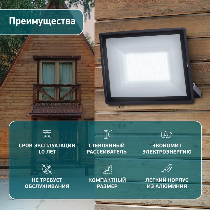Прожектор светодиодный уличный с высоким световым потоком. Корпус -черный, изготовлен из прочного алюминия, стекло закаленное. Экономичная LED-технология сократит до 90% затрат на электроэнергию. Прожектор устойчив к механическим воздействиям, защищен от дождя и пыли, работает при широком диапазоне температур (от -40 до +45). Отличается простой и быстрой установкой: есть кронштейн специальной формы и регулировочные болты для выбора направления света. Подходит как для внутреннего, так и для наружного применения.