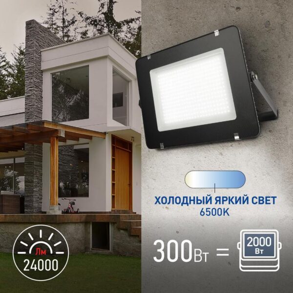 Характеристики Прожектор светодиодный уличный ЭРА LPR-023-0-65K-300 300Вт 6500К 24000Лм IP65: