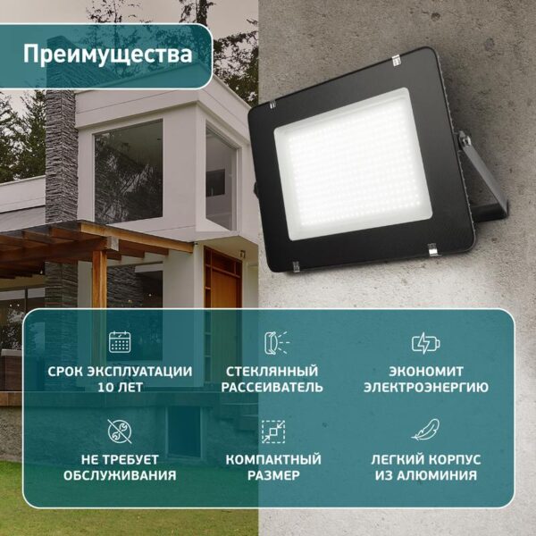 Прожектор светодиодный уличный с высоким световым потоком. Корпус -черный, изготовлен из прочного алюминия, стекло закаленное. Экономичная LED-технология сократит до 90% затрат на электроэнергию. Прожектор устойчив к механическим воздействиям, защищен от дождя и пыли, работает при широком диапазоне температур (от -40 до +45). Отличается простой и быстрой установкой: есть кронштейн специальной формы и регулировочные болты для выбора направления света. Подходит как для внутреннего, так и для наружного применения.