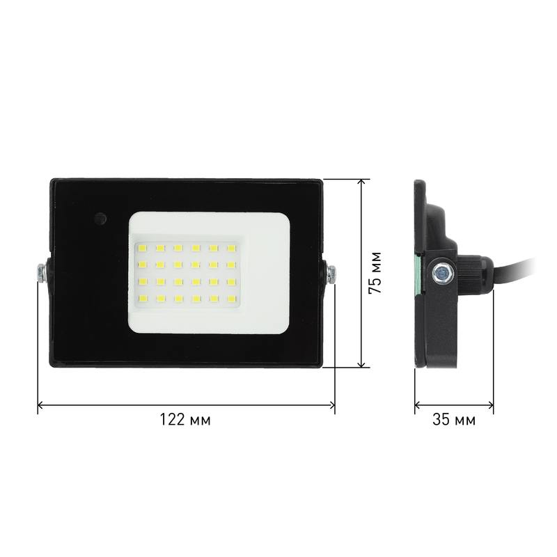 Характеристики Прожектор светодиодный уличный ЭРА LPR-041-1-65K-020 20Вт 6500К 1400Лм IP65 датчик движения нерегулируемый: