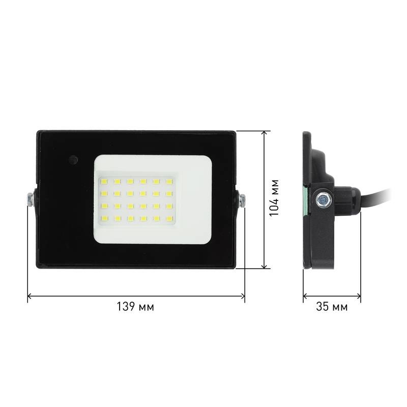 Характеристики Прожектор светодиодный уличный ЭРА LPR-041-1-65K-030 30Вт 6500К 2100Лм IP65 датчик движения нерегулируемый: