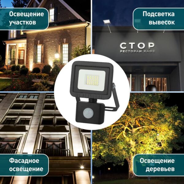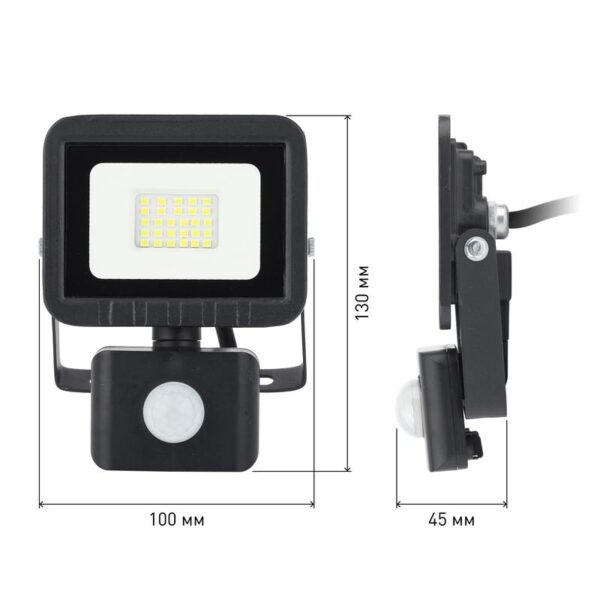 Характеристики Прожектор светодиодный уличный ЭРА LPR-041-2-65K-020 20Вт 6500К 1600Лм IP65 датчик движения регулируемый:
