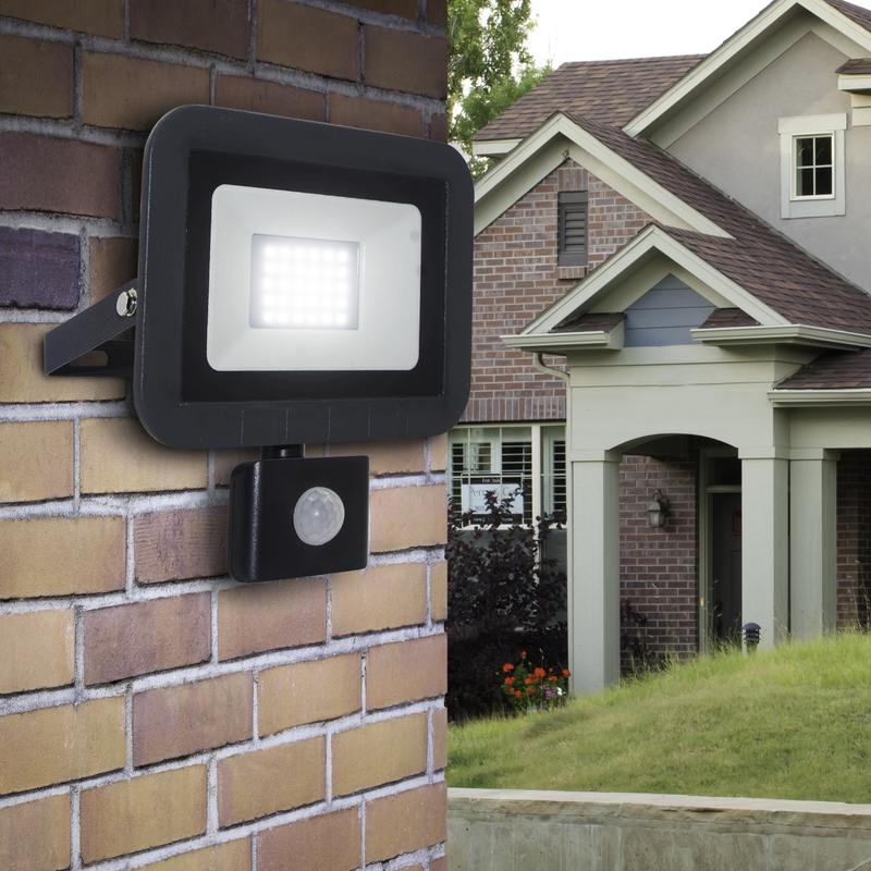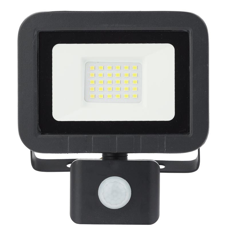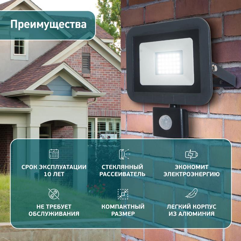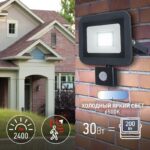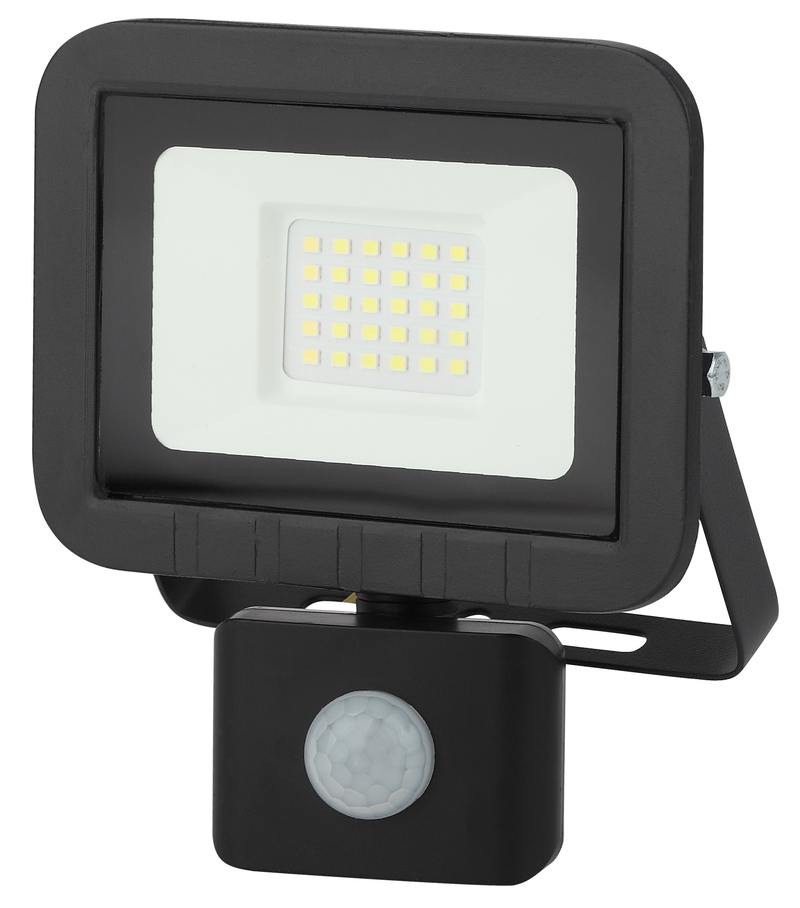 Прожектор светодиодный уличный с выносным регулируемым датчиком движения (СДО) ЭРА LPR-041-2-65K-030 мощность 30 Вт, с цветовой температурой 6500К (холодный белый свет), пылевлагозащитой IP65 (защищен от пыли и струй воды с любого направления), световым потоком 2400 Лм. Инфракрасный датчик реагирует на движение в зоне действия (радиус срабатывания от 1 до 8м) и автоматически включает освещение (время задержки от 5сек до 8мин). Корпус изготовлен из анодированного алюминия с покраской в черный цвет. Стекло — закаленное. LED технология обеспечивает длительный срок службы и экономию электроэнергии. Светильник работает в широком диапазоне рабочих напряжений — 200-240В, а также широком диапазоне температу от -45 до +40 — подходит как для внутреннего, так и наружного применения. Предназначен как для промышленного, так и для бытового освещения: дворов, подсобных помещений, приусадебных хозяйств, билбородов, в качестве уличного фонаря.