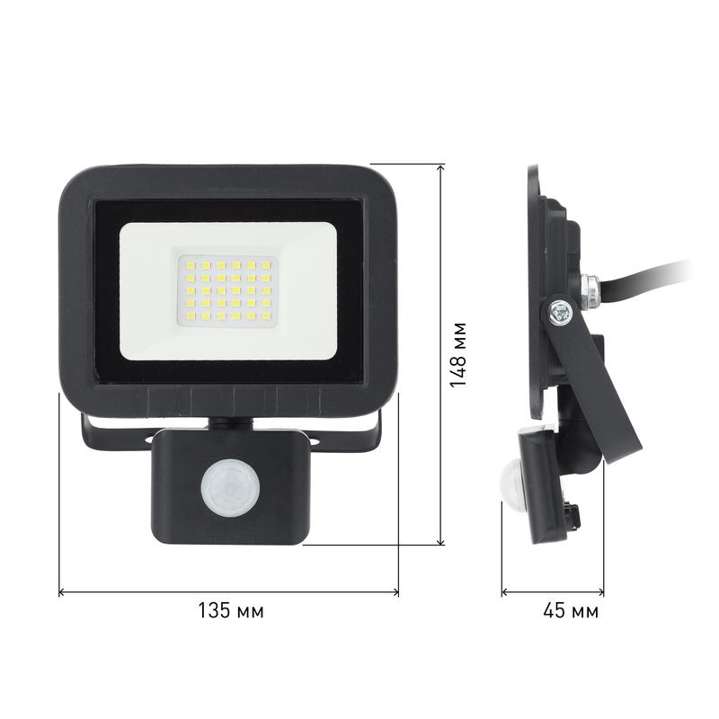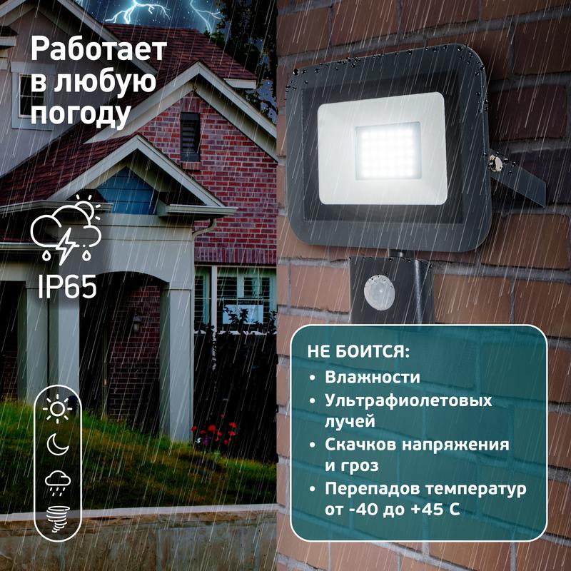 Характеристики Прожектор светодиодный уличный ЭРА LPR-041-2-65K-030 30Вт 6500К 2400Лм IP65 датчик движения регулируемый: