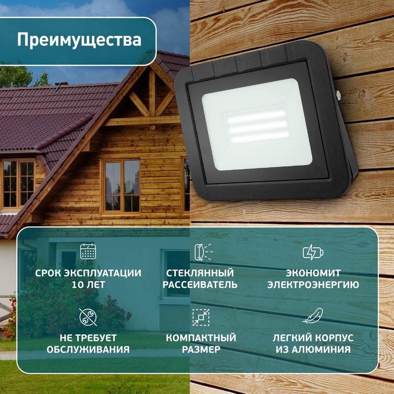 Прожектор светодиодный уличный (СДО) ЭРА LPR-061-0-65K-030 мощность 30 Вт, с цветовой температурой 6500К (холодный белый свет), пылевлагозащитой IP65 (защищен от пыли и струй воды с любого направления), световым потоком 2800 Лм. Корпус изготовлен из анодированного алюминия с покраской в черный цвет. Стекло — закаленное. LED технология обеспечивает длительный срок службы и экономию электроэнергии. Светильник работает в широком диапазоне рабочих напряжений — 200-240В, а также широком диапазоне температу от -40 до +45 — подходит как для внутреннего, так и наружного применения. Предназначен как для промышленного, так и для бытового освещения: дворов, подсобных помещений, приусадебных хозяйств, билбородов, в качестве уличного фонаря.