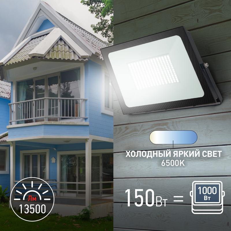 Характеристики Прожектор светодиодный уличный ЭРА PRO LPR-061-0-65K-150 150Вт 6500К 13500Лм IP65: