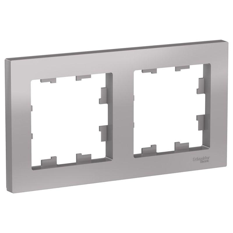 Рамка AtlasDesign (цвет алюминий) двухместная. — Устанавливается в вертикальном и горизонтальном положениях. — Лицевые детали из качественного ABS-пластика, устойчивого к царапинам и УФ-излучению. — Позволяет гармонично вписать электроустановочное изделие в интерьер помещения.