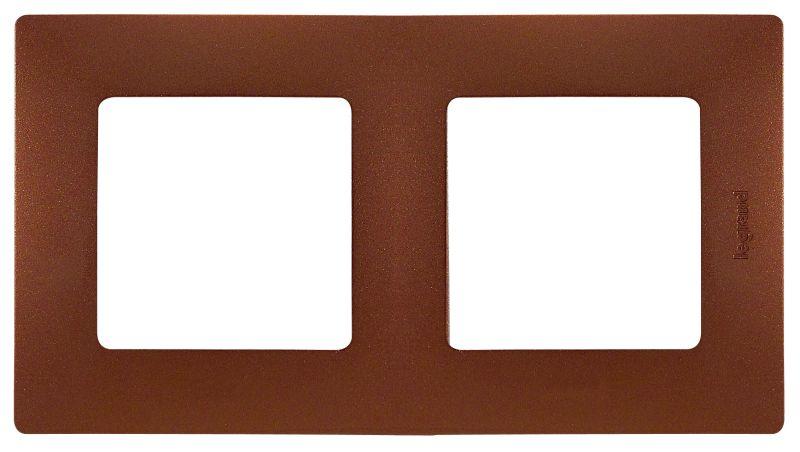 Рамка для розеток и выключателей Legrand Etika, 2 поста,Какао. Особенности: — Металлик. Матовая. Изготовлена из высококачественного АБС пластика-материал не поддерживает горение, стоек к выгоранию и загрязнениям. — Крепление рамки на многоуровневых защёлках. Способ крепления позволяет скрывать незначительные неровности стен.