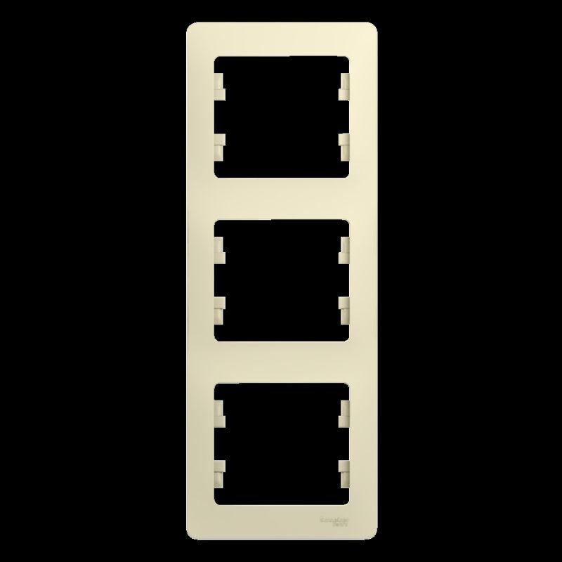 Рамка Glossa (цвет бежевый) трёхместная. — Устанавливается в вертикальном положении. — Выполнена из материала PС+ASA, стойкого к УФ-излучению и появлению царапин. — Позволяет гармонично вписать электроустановочное изделие в интерьер помещения.