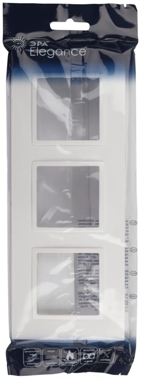 Характеристики Рамка для розеток и выключателей ЭРА Elegance 14-5013-01 Classic, на 3 поста, белый: