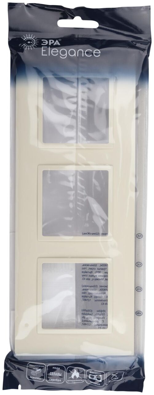 Характеристики Рамка для розеток и выключателей ЭРА Elegance 14-5013-02 Classic, на 3 поста, слоновая кость: