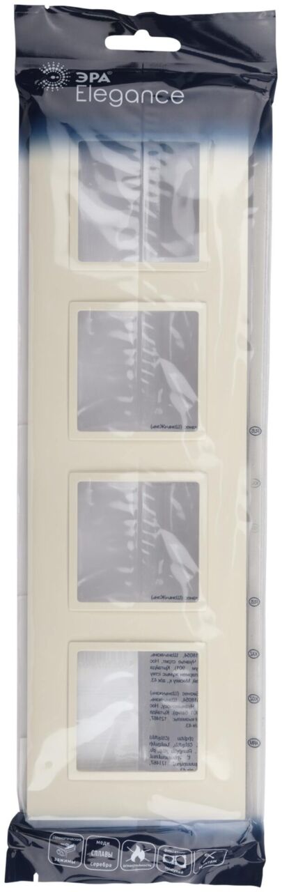 Характеристики Рамка для розеток и выключателей ЭРА Elegance 14-5014-02 Classic, на 4 поста, слоновая кость:
