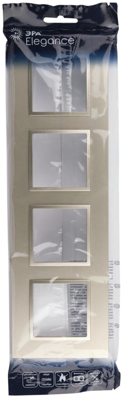 Характеристики Рамка для розеток и выключателей ЭРА Elegance 14-5014-04 Classic, на 4 поста, шампань: