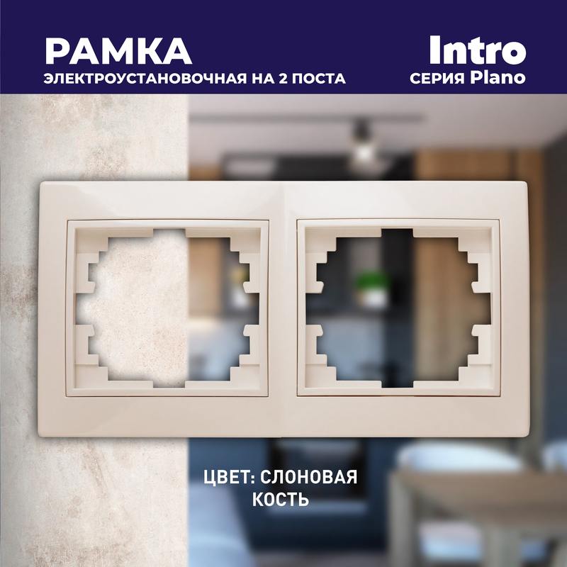 Характеристики Рамка для розеток и выключателей Intro Plano 1-502-02 на 2 поста горизонтальная, СУ, слоновая кость:
