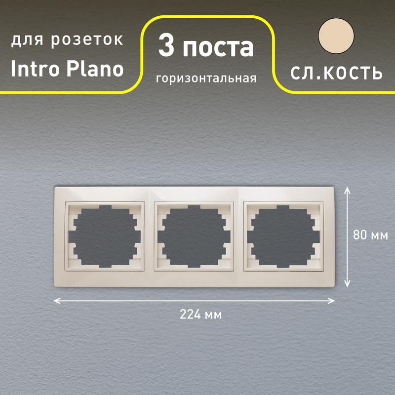 Характеристики Рамка для розеток и выключателей Intro Plano 1-503-02 на 3 поста горизонтальная, СУ, слоновая кость: