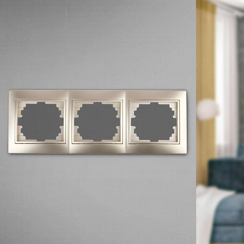 Характеристики Рамка для розеток и выключателей Intro Plano 1-503-04 на 3 поста горизонтальная, СУ, шампань: