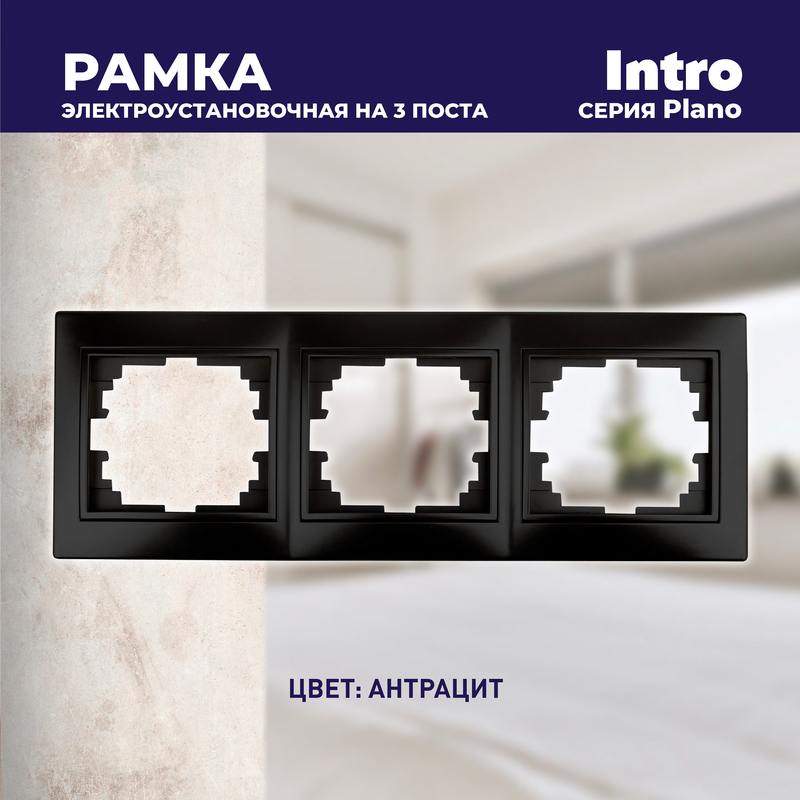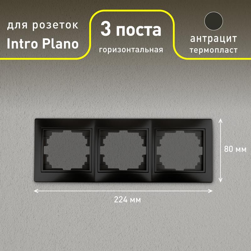 Характеристики Рамка для розеток и выключателей Intro Plano 1-503-05 на 3 поста горизонтальная, СУ, антрацит: