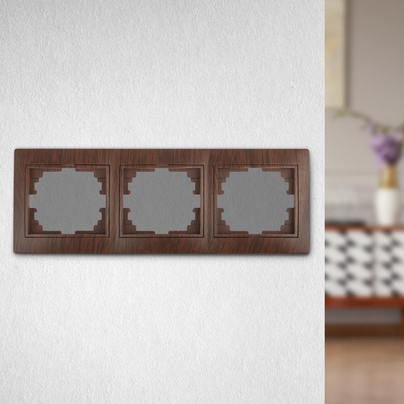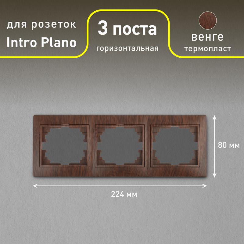 Характеристики Рамка для розеток и выключателей Intro Plano 1-503-10 на 3 поста горизонтальная, СУ, венге: