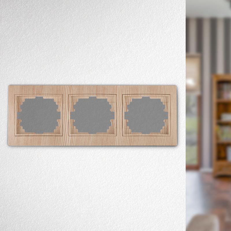Характеристики Рамка для розеток и выключателей Intro Plano 1-503-11 на 3 поста горизонтальная, СУ, сосна: