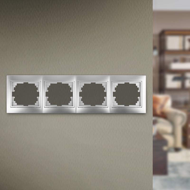 Характеристики Рамка для розеток и выключателей Intro Plano 1-504-03 на 4 поста горизонтальная, СУ, алюминий: