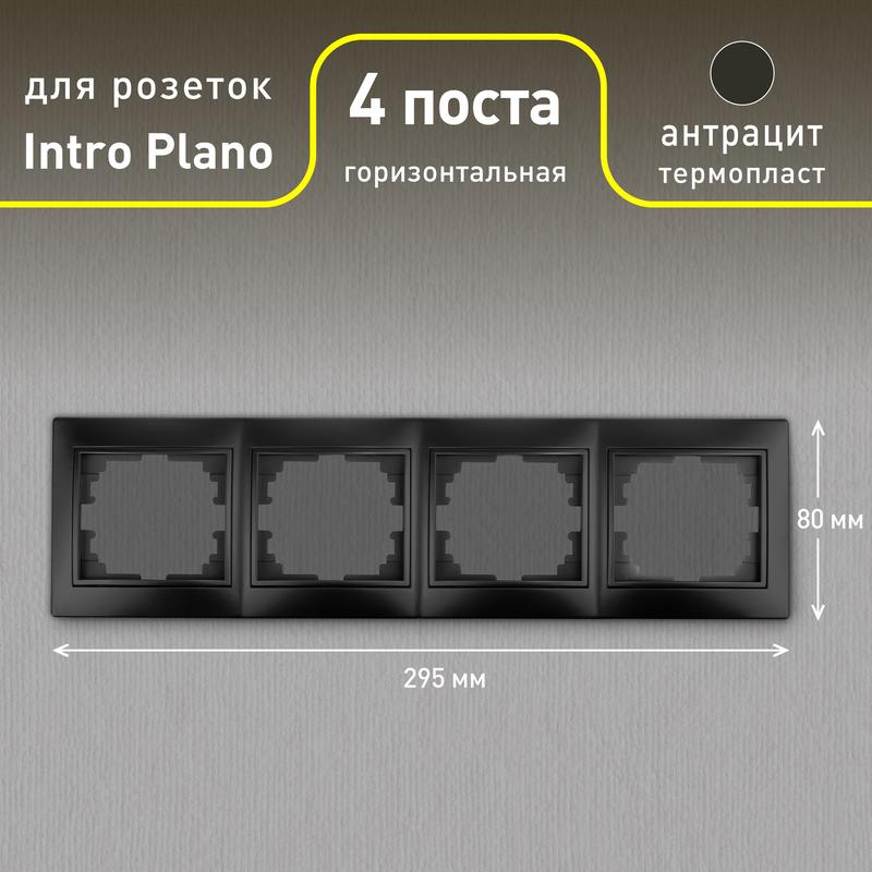 Характеристики Рамка для розеток и выключателей Intro Plano 1-504-05 на 4 поста горизонтальная, СУ, антрацит: