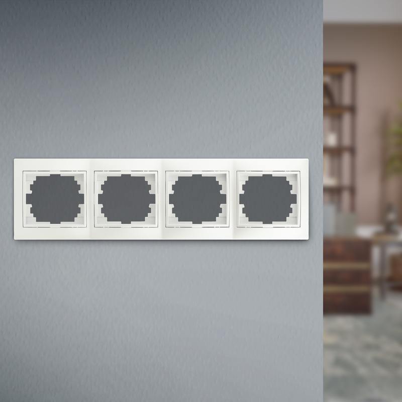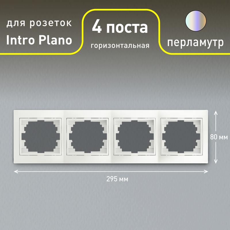 Рамка для розеток и выключателей Intro Plano 1-504-06 на 4 поста горизонтальная, СУ, перламутр