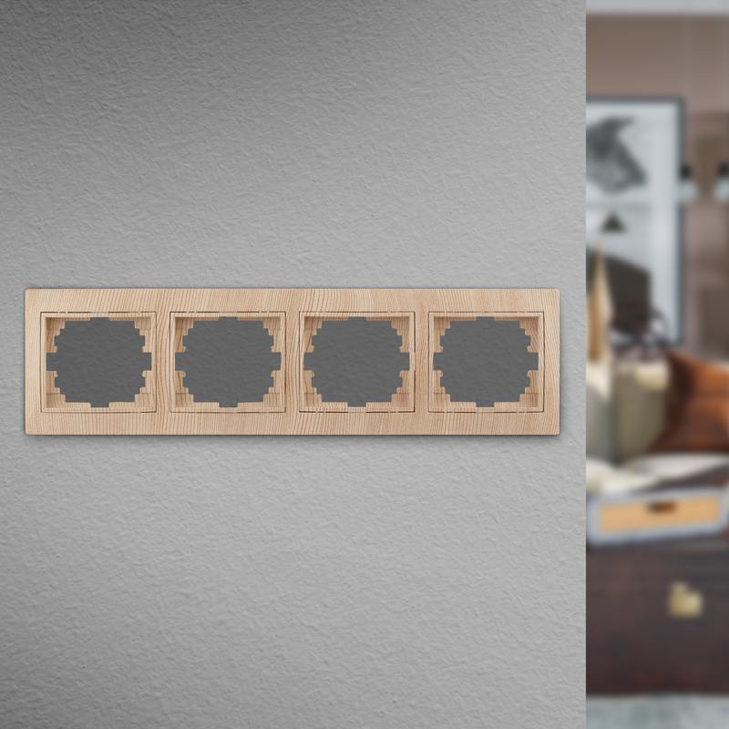 Характеристики Рамка для розеток и выключателей Intro Plano 1-504-11 на 4 поста горизонтальная, СУ, сосна:
