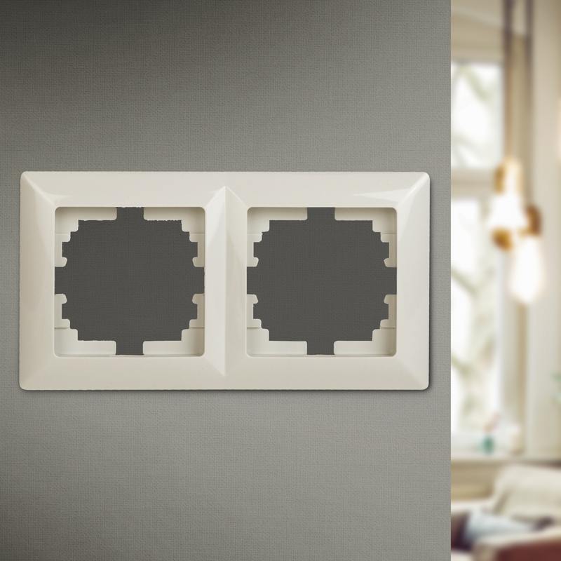 Рамка выполнена из термопласта. Устанавливается на 2 устройства серии Intro Solo, смонтированные в два горизонтально установленных подрозетника.