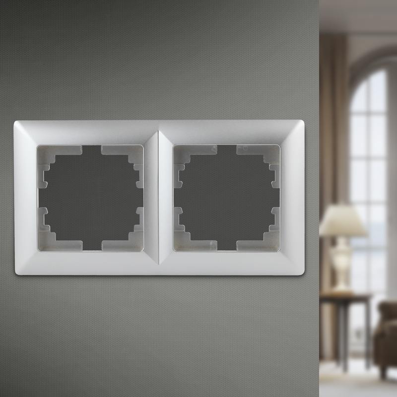 Характеристики Рамка для розеток и выключателей Intro Solo 4-502-03 на 2 поста, СУ, алюминий: