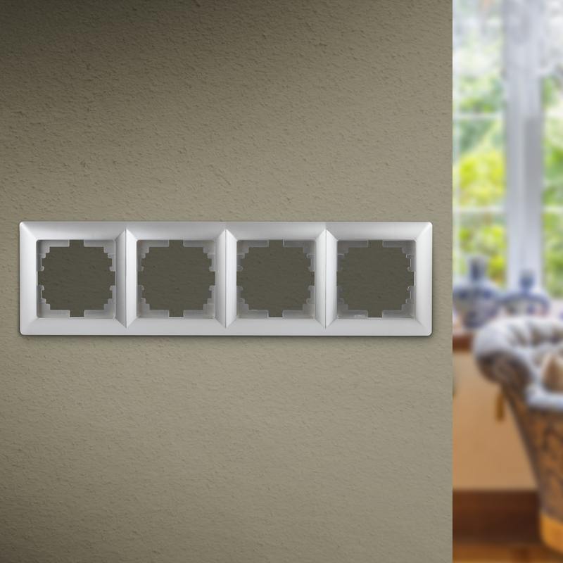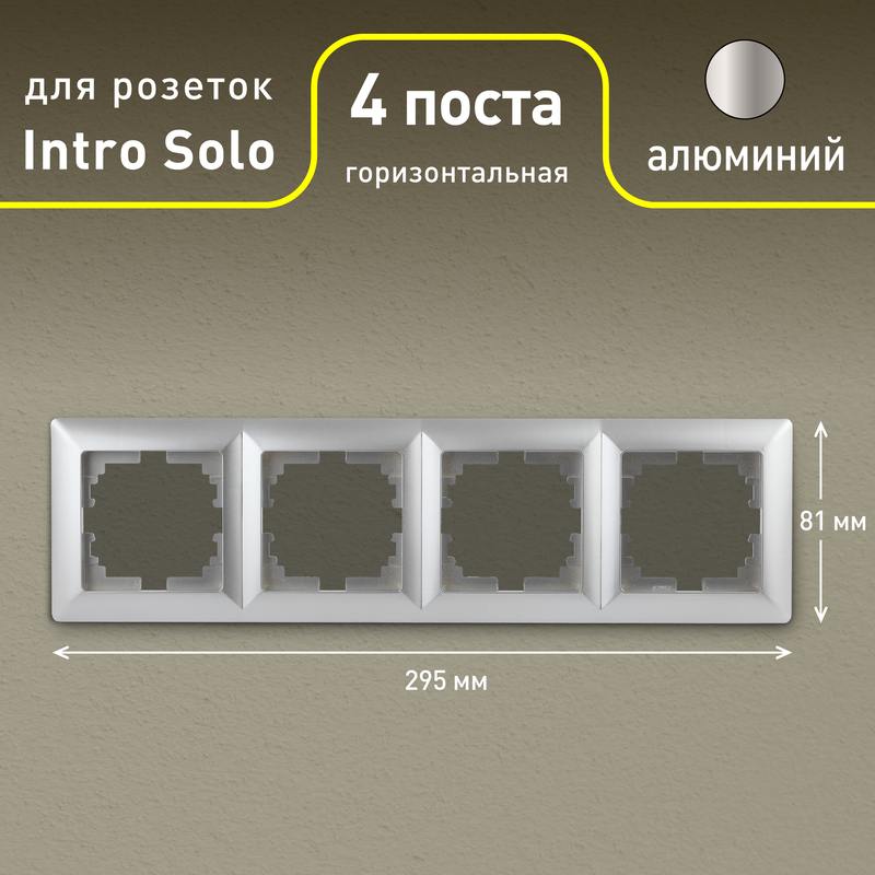 Характеристики Рамка для розеток и выключателей Intro Solo 4-504-03 на 4 поста, СУ, алюминий: