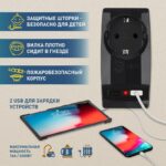 Характеристики Разветвитель электрический ЭРА SP-1e-USB-B на 1 розетку + 2 USB с заземлением 16А черный: