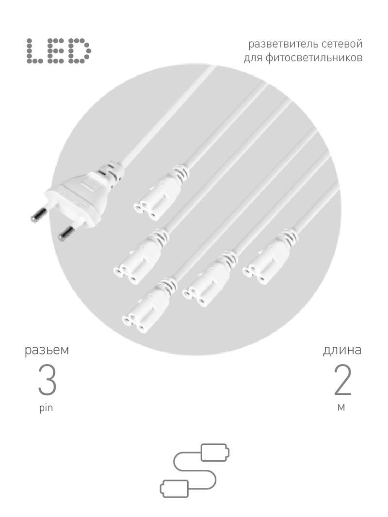 Характеристики Разветвитель сетевой для фитолампы ЭРА FITO 5х IEC C5 (3-pin) 2 м для подключения 5 светильников: