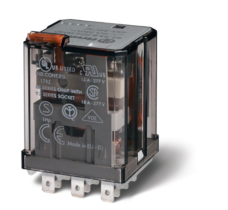 Характеристики Реле силовое электромеханич. монтаж в розетку или наконечники Faston 187 (4.8х0.5мм) 3CO 16А AgCdO 24В DC RTI FINDER 623390240040:
